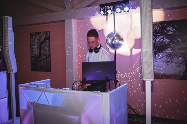 Jeder Hochzeitsdj sollte eigene Technik besitzen, alles andere wäre sinnlos. Doch auch bei der Technik gibt es so viele Unterschiede, die sich auch auf die Party und Stimmung auswirken. Wichtig ist, dass die Technik immer ansprechend aussehen muss, denn das Setup des DJs sollte sich in eure Location & Deko gut einfügen. Es sollten kaum Kabel zusehen sein und der Aufbau sollte elegant und nicht überladen sein. Ich biete zum Beispiel für Hochzeiten ein White Wedding Setup an, bei dem alles Weiß ist und sich deshalb immer sehr unauffällig in eure Location einfügt.